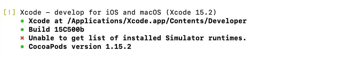 Unable to get list of installed Simulator runtimes