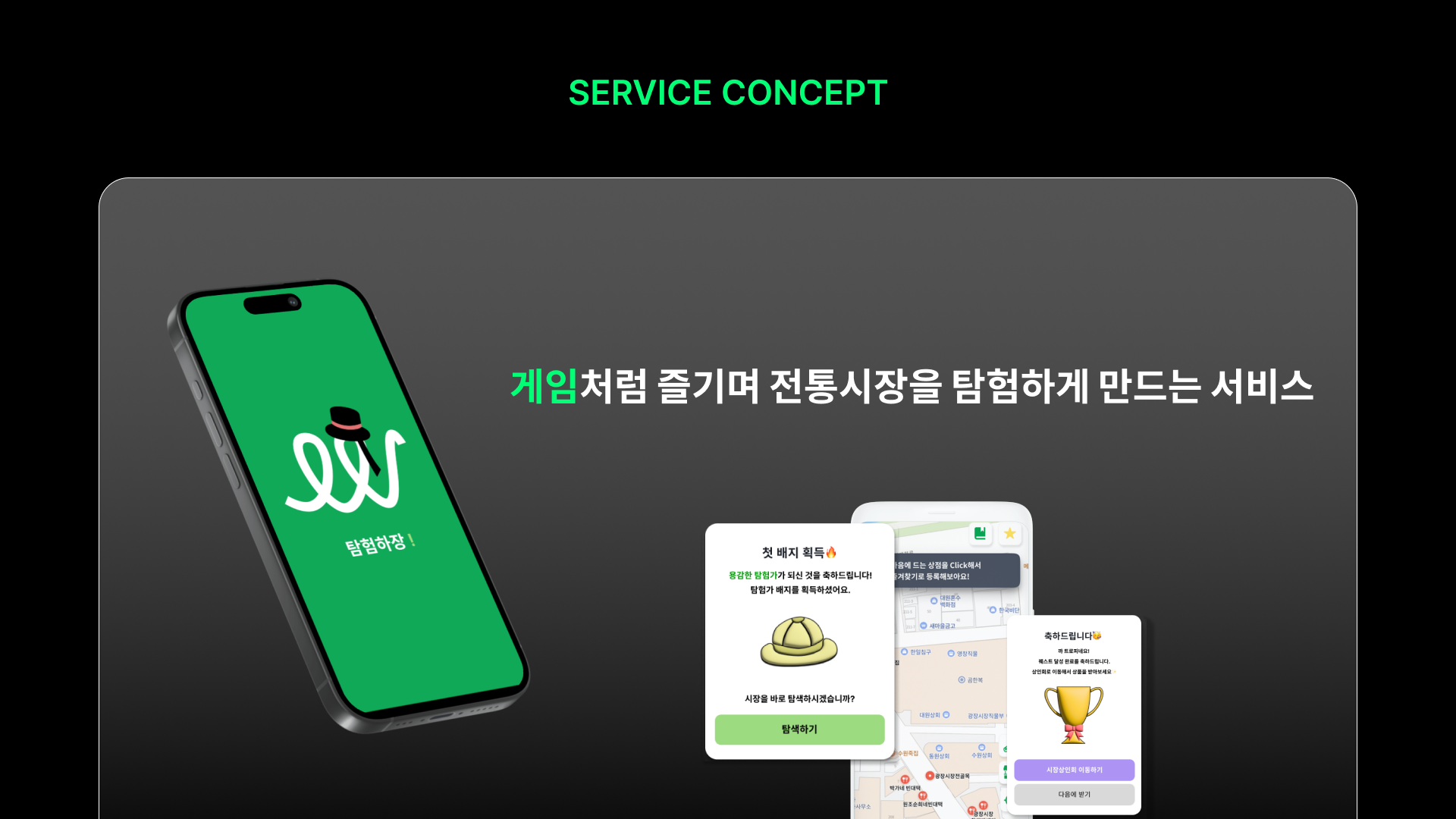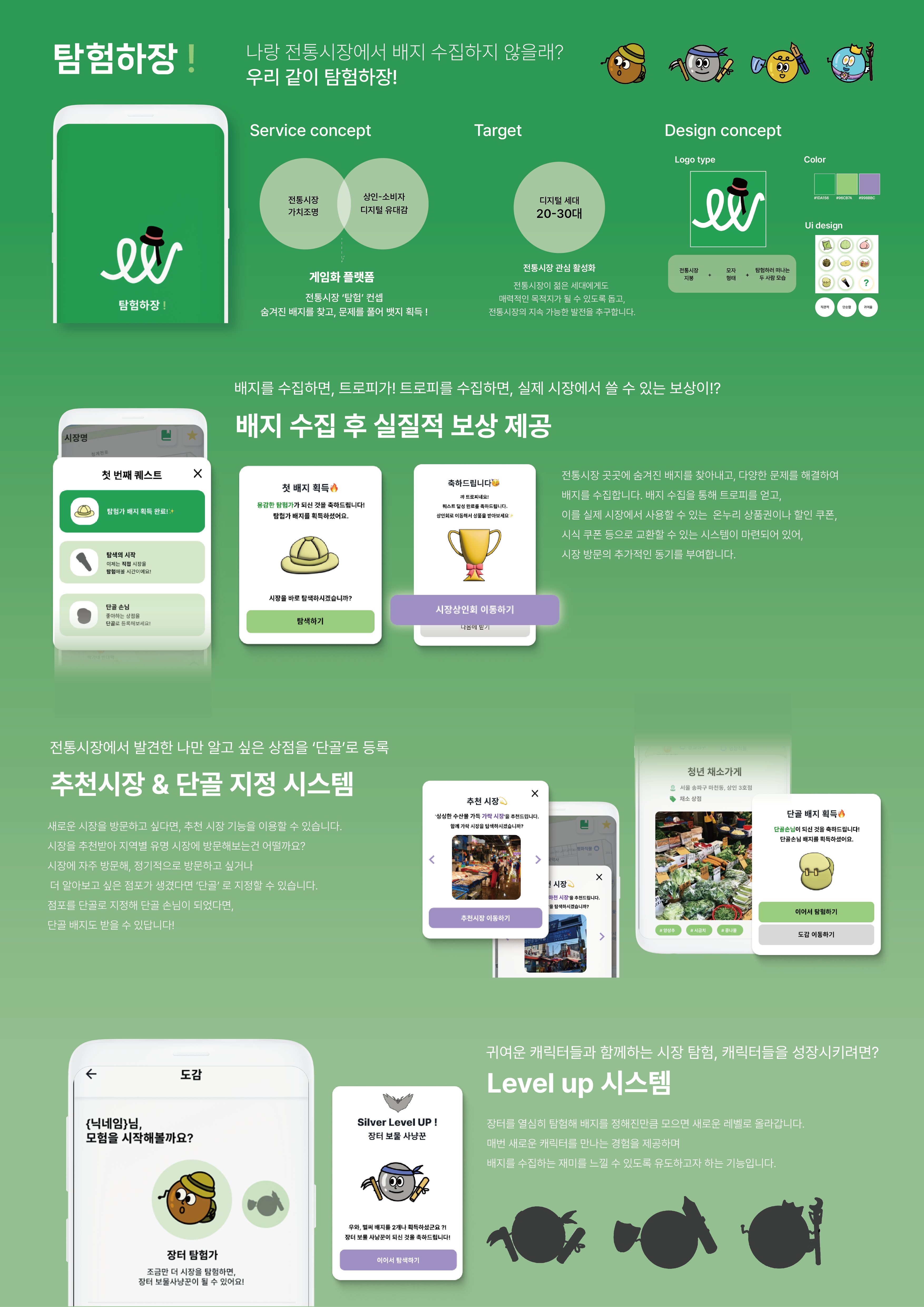 이때, MZ세대를 공략하고자 게임적인 요소를 활용하여 전통시장을 새롭고 재미있는 경험으로 제공함으로써,