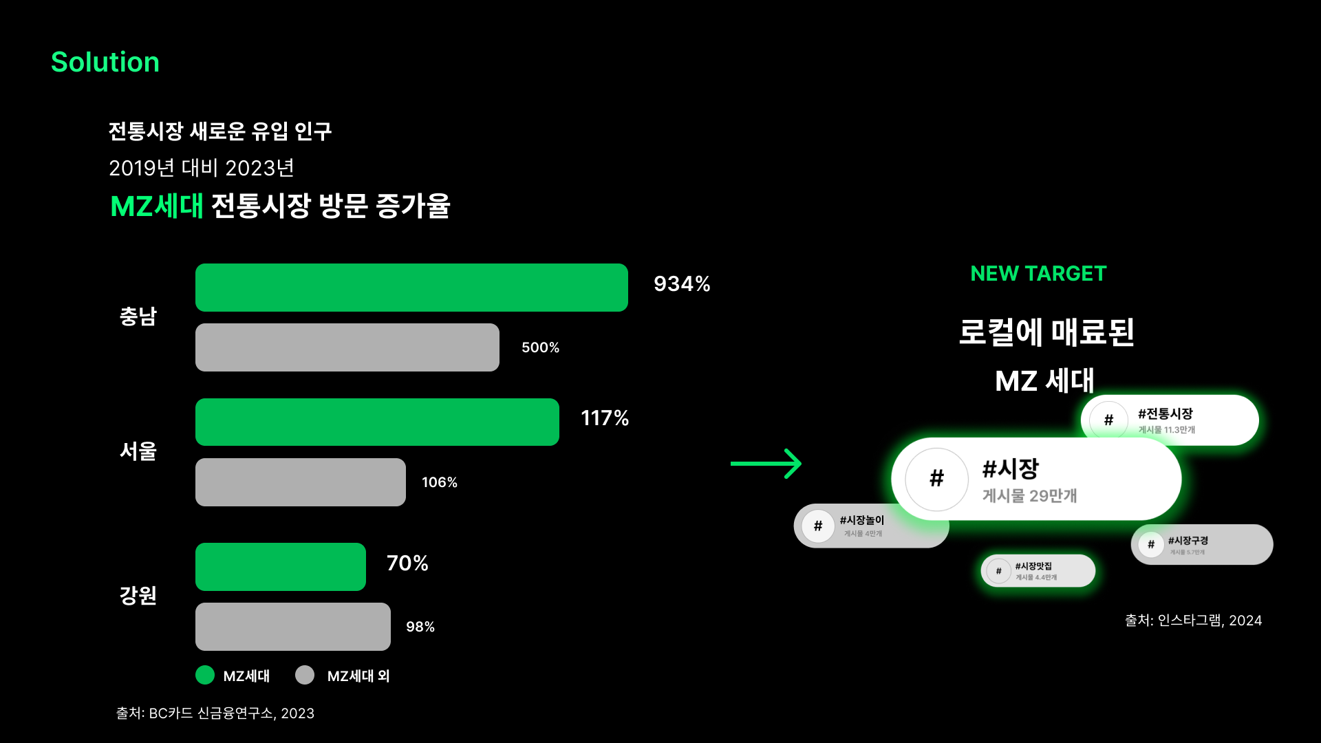그 결과, 최근 로컬에 매료된 MZ세대의 전통시장 이용률이 상승하고 있다는 사실을 알게 되었습니다.