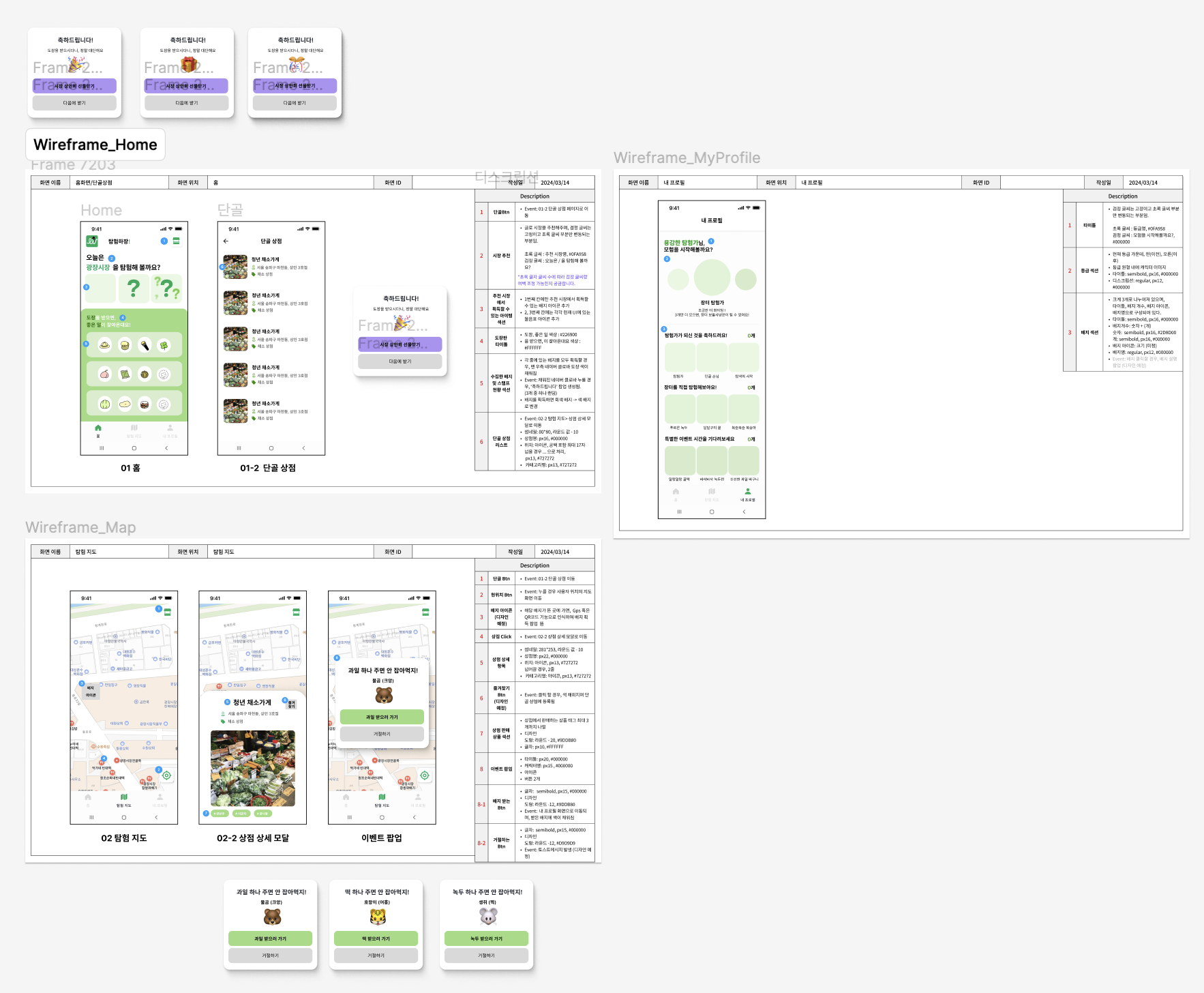 3월 13일 새벽 - 주요 화면 1차 와이어프레임 완료